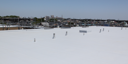 塩化ビニル樹脂製の塩ビシートを使用した防水工事です。
